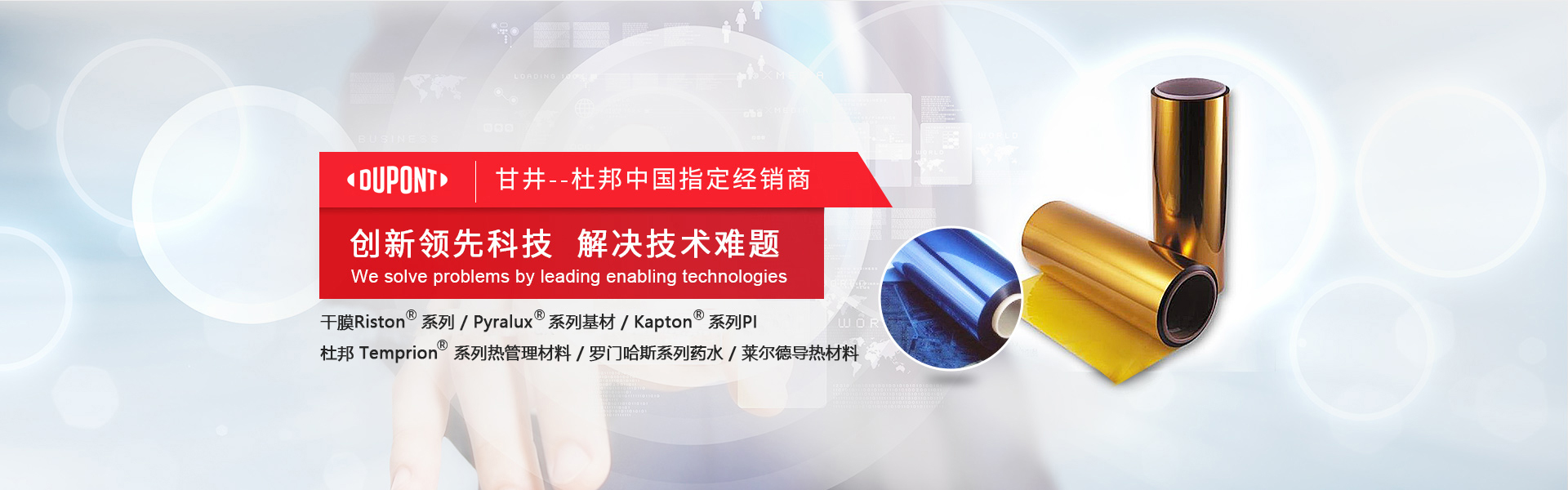 甘井公司2006年創(chuàng)立于深圳,是杜邦公司指定的一級(jí)經(jīng)銷(xiāo)商,在中國(guó)香港、上海、蘇州、成都和泰國(guó)曼谷設(shè)有公司。主營(yíng)的產(chǎn)品有杜邦Riston?干膜、杜邦Pyralux?軟板材料、杜邦Kapton?PI、杜邦TemprionTM熱管理材料以及羅門(mén)哈斯藥水等,產(chǎn)品廣泛應(yīng)用于線(xiàn)路板、觸摸屏、電氣絕緣、高速機(jī)車(chē)、航空航天、太陽(yáng)能等行業(yè)領(lǐng)域。